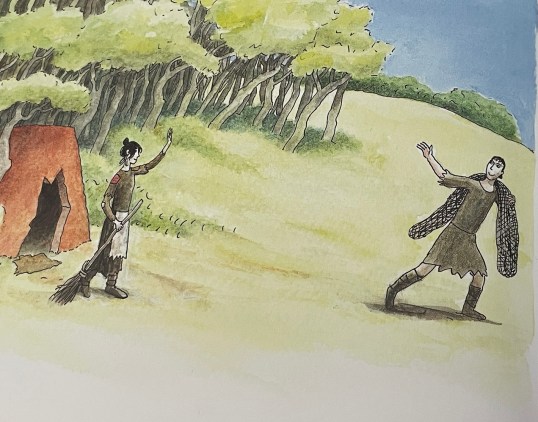 De man vertelt het aan zijn vrouw en ze draagt hem op om een huis te vragen. Dat doet hij met bovenstaande rijmpje, daarbij implicerend dat de vrouw hem tot iets dwingt omdat ze hebberig is. Het botje vervult de wens, maar na een paar weken wil de vrouw een groter huis, en de visser wordt weer op pad gestuurd.