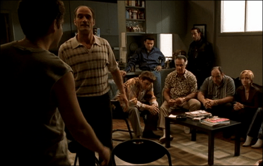 Christopher’s intervention is a comical highlight in the series. How are these guys gonna be non-judgemental? Paulie, Silvio and Tony’s sharings are all funny enough to piss your pants. When Christopher starts to talk back, things get even more hysterical. If your intervention ends with a fractured skull, you know you have a couple of great friends.
